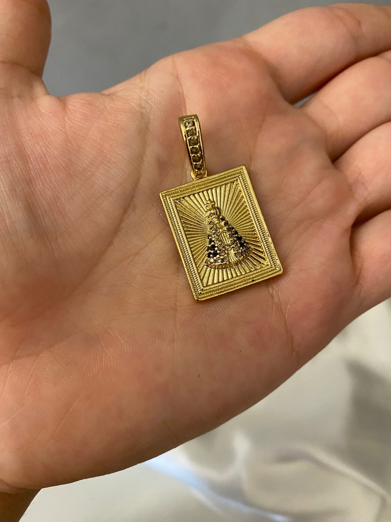 PINGENTE PLACA NOSSA SENHORA MANTO CRAVEJADO COM ZIRCÔNIAS P TEXTURIZADO COM VINCOS- 2,5X2CM - BANHADO A OURO 18K